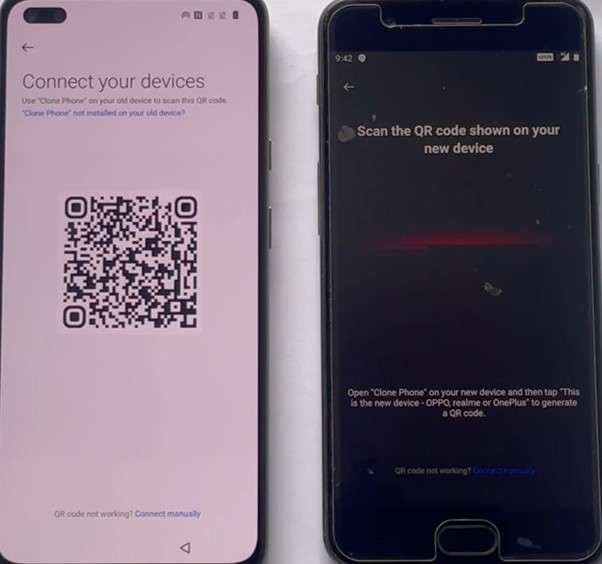 Step 11. Finally, connect both phones using the QR code and select a few small files in kilobytes to transfer. Once the transfer is complete, the FRP bypass process will be successfully finished.