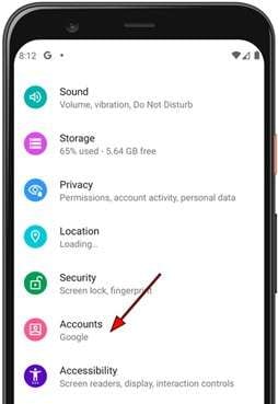 Step 1. First, head over to the phone’s settings and continue scrolling until you locate the “Accounts” section. Next, tap on it to view all linked accounts and search for the Google Account associated with the device.
