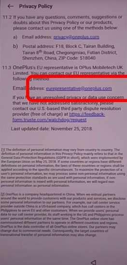Step 2. Next, return to the initial Hello screen, tap “Start” once more, and select “Privacy Policy” on the OnePlus Terms & Conditions page. At this point, locate the first paragraph of “Introduction” and tap “[1].”