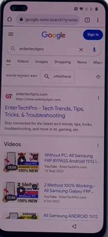 Step 8. This time, Google Chrome will open, where you have to agree to the terms to access the YouTube page. From here, use the Google search bar to visit the EnterTechPro website and navigate to its APK-Bypass section.
