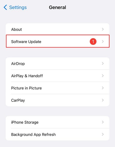 Step 1: Access the "General" settings tab from the Settings app. Here, tap the second option, "Software Update," to check for available updates.