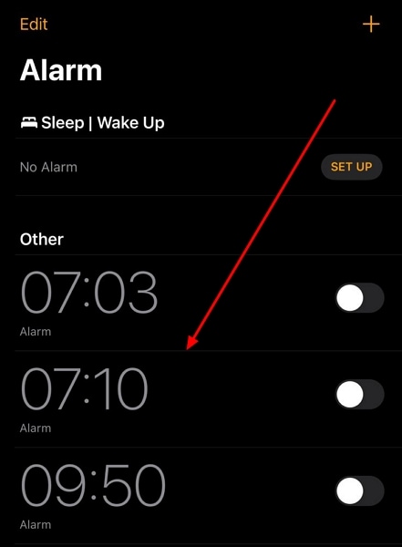 Step 1: Navigate to your iPhone's “Clock” app and open it. Here tap "Alarm" and check to ensure all your Alarms are correctly configured.